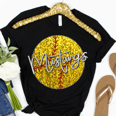SOFTBALL MUSTANGS Embroidery Sports Balls Faux Sequin Silver Digital Download