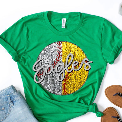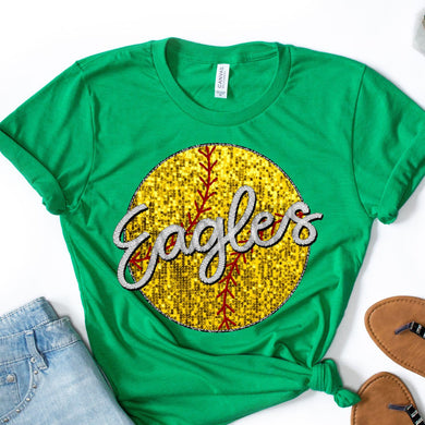 EAGLES SOFTBALL Embroidery Sports Balls Faux Sequin Silver Digital Download