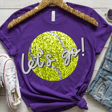 LET'S GO TENNIS Embroidery Sports Balls Faux Sequin Silver Digital Download