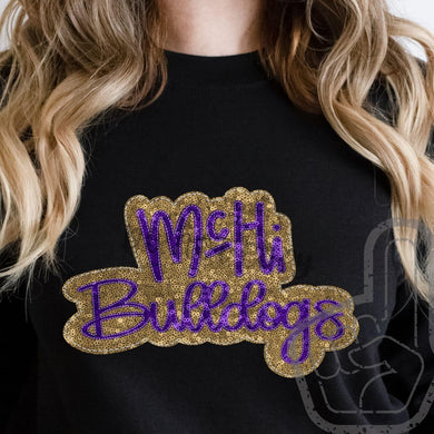 KBD OG SEQUIN AND EMBROIDERY WORDS McHI BULLDOGS Purple and Yellow Gold