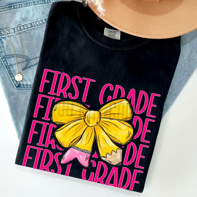 KBD OG Bow Stack FIRST GRADE Hot Pink Words and Pencil