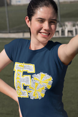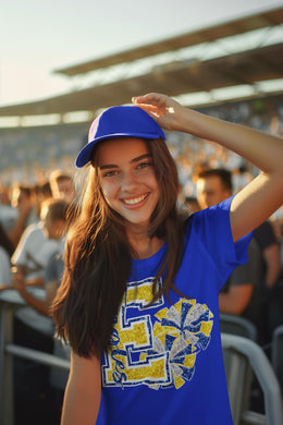KBD OG Varsity Glitter Cheer E EAGLES Royal and Yellow
