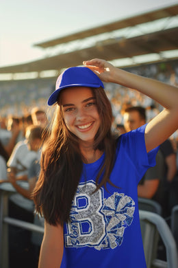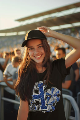 KBD OG Varsity Glitter Cheer H HAWKS Royal and Black