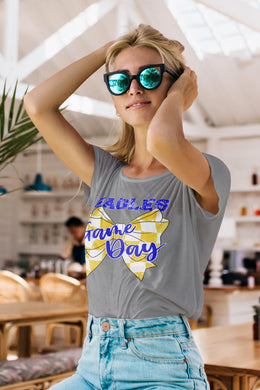 KBD OG Checkered Game Day Bow EAGLES Royal and Yellow