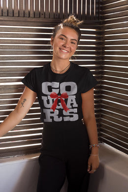 KBD OG Blocky Bow Mascot COUGARS Grey and Red Bow